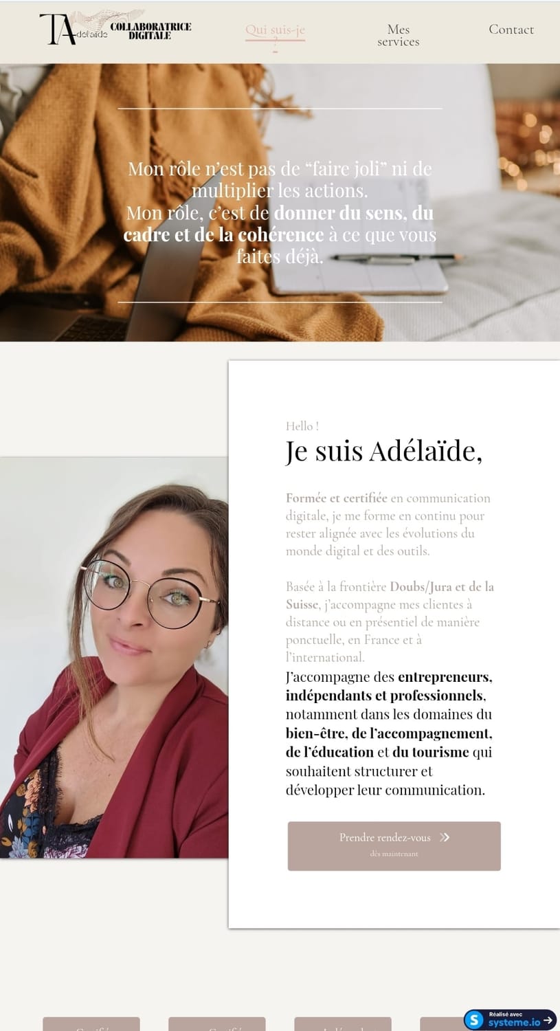 «Adélaïde a pris le temps de comprendre en profondeur mes besoins et mes attentes, tout en me proposant des suggestions pertinentes qui ont réellement amélioré la qualité du résultat final.
